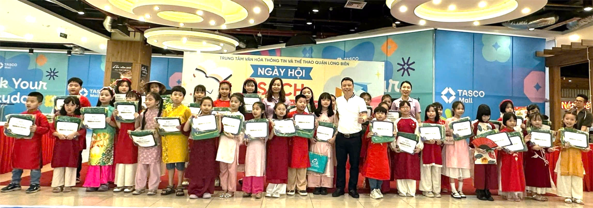 Tại Ngày hội Sách do Trung tâm Văn hóa – Thông tin – Thể thao quận Long Biên tổ chức, các em học sinh nhà trường được tham gia các hoạt động hưởng ứng như: Trình diễn thời trang áo dài, Rung chuông vàng,.. đầy hào hứng và hấp dẫn. Sau phần hoạt động, các em học sinh được tự do tham quan và tìm đọc những cuốn sách yêu thích tại các gian trưng bày. Sự tò mò và thích thú khám phá sách của các em là một thành công lớn cho ngày hội.