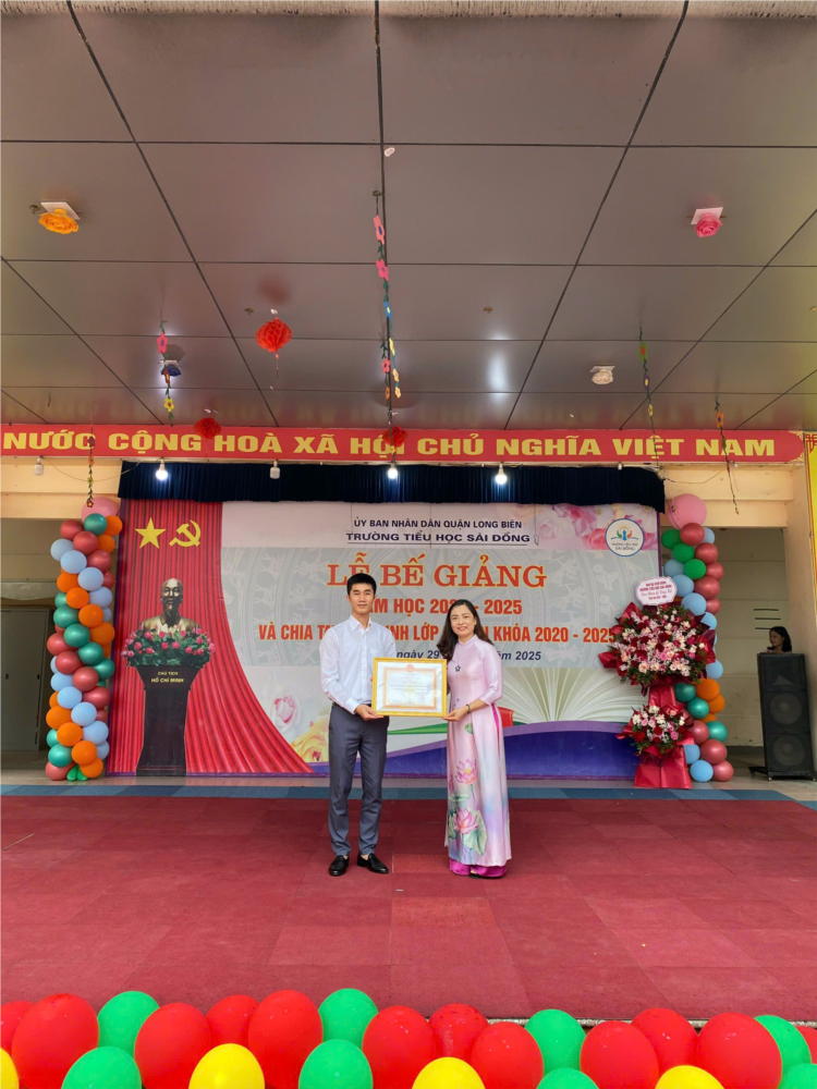 Thực hiện nhiệm vụ năm học 2024 - 2025, sáng ngày 29/5/2025, trường Tiểu học Sài Đồng long trọng tổ chức Lễ bế giảng và chia tay học sinh lớp 5 niên khóa 2020 – 2025. Đến dự buổi lễ có đồng chí Hồ Việt Phúc – Đảng ủy viên, Phó Chủ tịch Ủy ban nhân dân phường Phúc Đồng cùng toàn thể CB – GV – NV và 986 em học sinh trường Tiểu học Sài Đồng thân yêu.